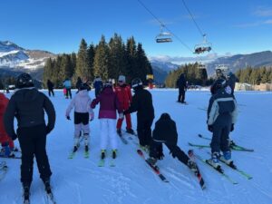 Les élèves participants au séjour au ski sont bien arrivés à Morzine. Après une bonne nuit en altitude, ils ont chaussé les skis, pour la plupart pour la première fois et déjà de beaux progrès sont à noter. Les plus expérimentés ont pu prendre les télésièges et dévaler les pistes bleues. Malgré le froid, les conditions sont optimales pour passer une belle semaine !