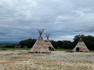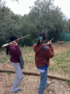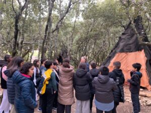 Après l’arrivée des élèves, une première journée très riche sur les traces des homo sapiens du Paléolithique : reconstitution d’un campement, visite de la reconstruction de la Grotte Chauvet et atelier chasse.